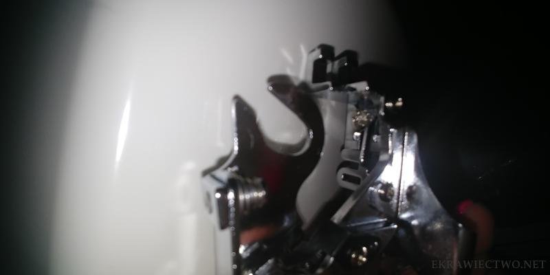 Fides po zalozeniu normalnej stopki wszystko jest okej szyje notmalnie tak jak zawsze. Problem jest w tym ze chwytacz (zdj) zachacza i blokuje sie w pewnym momencie na srubie(zdj).