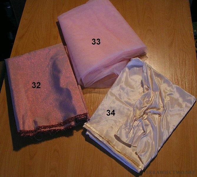 Wszystkie tkaniny na poniższym zdjęciu to cienki atłas trochę błyszczący (jak na zdjęciu).