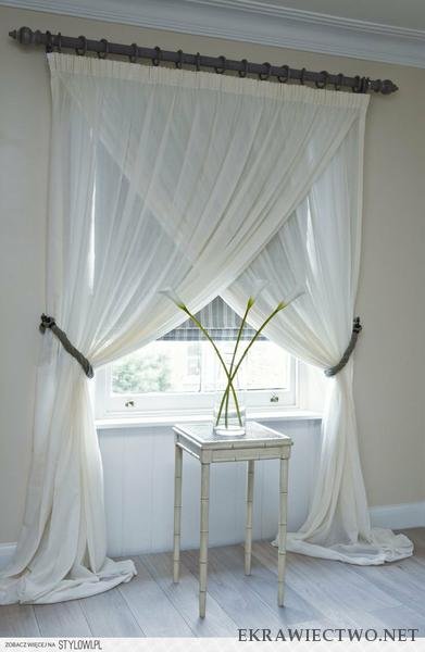 Mam jeszczo jedno pytanie. Ta firana którą szyje naklada się na siebie jest po bokach podwiazywana jak na wczesniejszym zdjeciu, z tym ze te boki firan beda lezaly na ziemi jakieś 40-50cm. Wymiar firany jak wyzej czyli okno szerokie 230 wys. 210. Chodzi mi o efekt wypuszczenia tej firany od momentu podwieszenia, chce uzyskac efekt stopniowo obniżającyh sie fal i chyba do tego trzeba podciac na dole firany .chce uzyskac efekt jak na zdjeciu 2 czyli ta zielona zasłona.