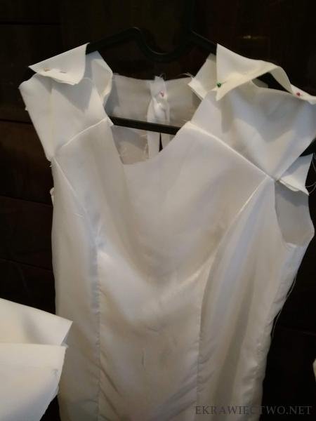 Dzięki za info. Jeśli chodzi o krojenie to również wszystko kroiłam razem - by było jednakowej wielkości. Dla przykładu wrzucam zdjęcia jak to robię na bazie kolejnej sukienki nad którą siedzę teraz (zdjęcie z szytej podszewki). Po niej mam w planach uszyć drugi raz spódnicę ołówkową nr 1 tylko inaczej zrobić te niby kieszenie, bo mnie drażnią. Na podszewce wpierw testuje jak będzie leżeć na mnie - tu jeszcze czeka mnie rozprasowanie ale to jak córka zaśnie