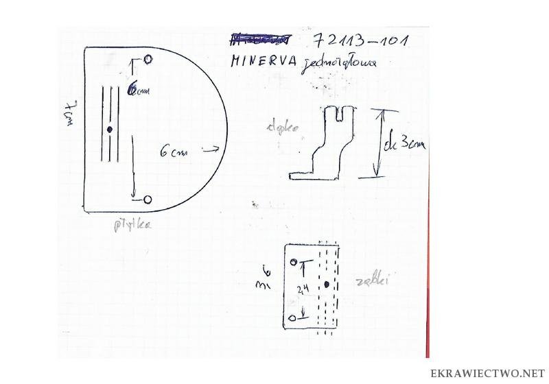 Poszukuję do wiekowej stebnówki Minerva płytki ściegowej i ząbków do cięższego szycia. Maszyna ma symbol 72113-101. Fabryczne ząbki miały oznaczenie katalogowe 651.130 natomiast płytka 811.101 W załączniku zamieszczam wymiary elementów. Być może pasuje też od innych maszyn. Może komuś zalega i ma ochotę sprzedać. |