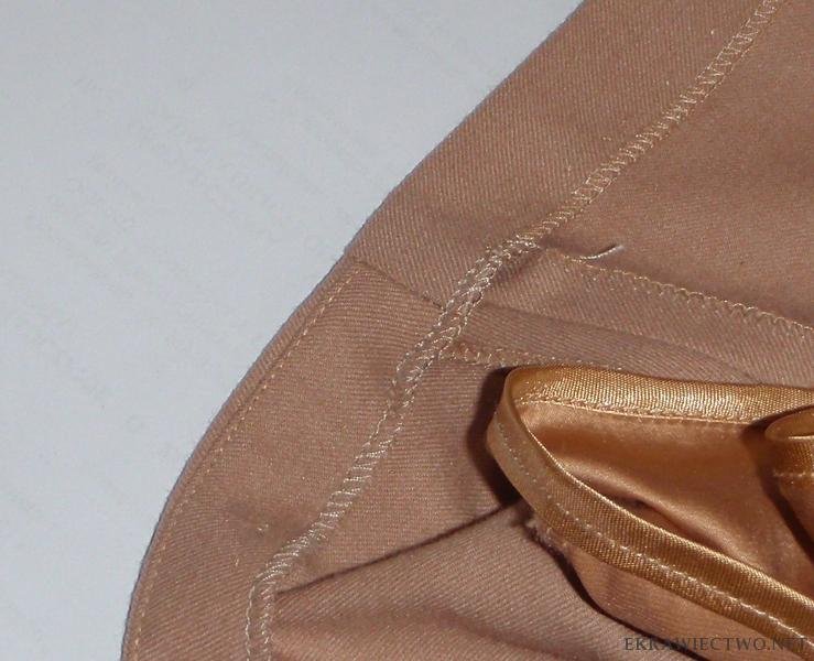 Niteczko. Tutaj masz kawałek spódnicy. Przód (na dole zdjęcia) jest zszyty z obłożeniem, natomiast tył krojony razem z zapasem na podwinięcie. ________________________________________________________