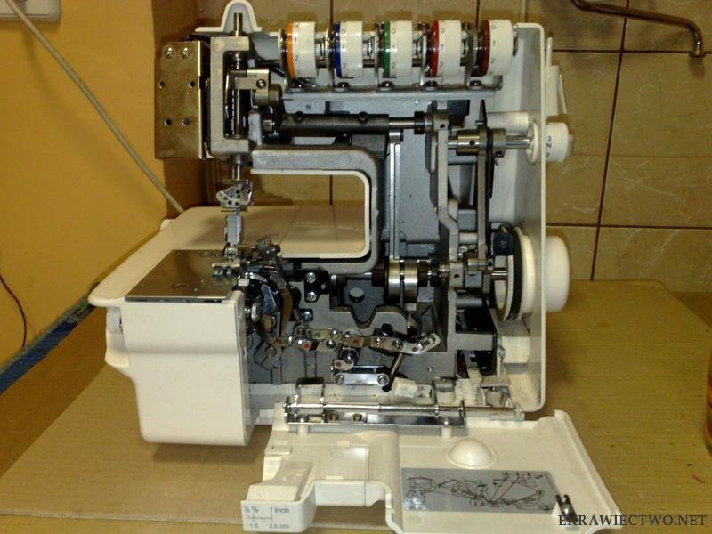 Oczywiście że możesz pytac po to jest forum i od tego są fachowcy żeby pomagać nawet w tych błahych sprawach. A poniżej zdjecie wnętrza coverlocka 689 i Elna 2600 także widać jaka to solidna metalowa konstrukcja