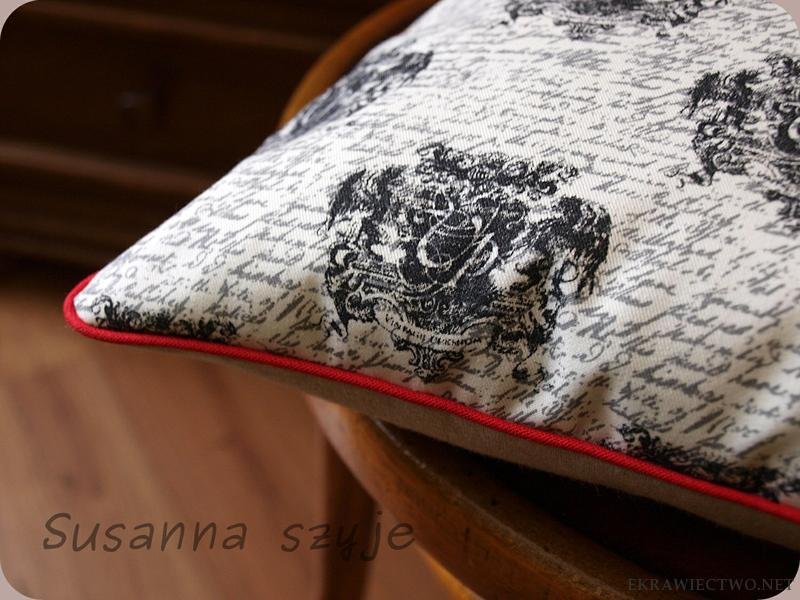 Swietna ta poszewka ! Gdzie kupujesz takie tkaniny? Szukam czegos sensownego do moich projektow w strone steampunk czyli nadruki kojarzace sie z antykami, latami 1800 Co do mojej pracy dyplomowej kolorystycznie nie dorasta do Twojej podusi. Dysponowalysmy plaszczowym kaszmirem i 3 kolorami (czerwony, krem i czarny)wiec nie bardzo mozna bylo poszalec ________________________________________________________