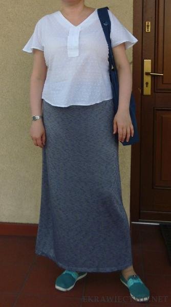 Próbowałam kimonową z papavero, ale ona ma taki tył szeroki, na moje proporcje niedobre. Te są szyte na podstawie papaverowej bluzki "kimono plus serek".
