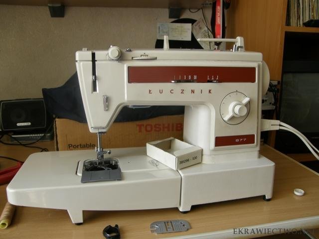 Oczywiście korzystam z maminego Łucznika, ale tylko kiedy jestem u rodziców w odwiedzinach. Od kilku lat mieszkamy w różnych miastach, odległość ponad 200 kilometrów. Mama chce mieć swoją maszynę zawsze pod ręką, w razie jakieś nagłej potrzeby (nie od parady dostała taki prezent, trochę szyć potrafi). Dlatego nie ma mowy o zabraniu Łucznika do siebie.