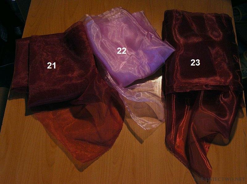Wszystkie tkaniny na poniższym zdjęciu to cienki atłas trochę błyszczący (jak na zdjęciu).