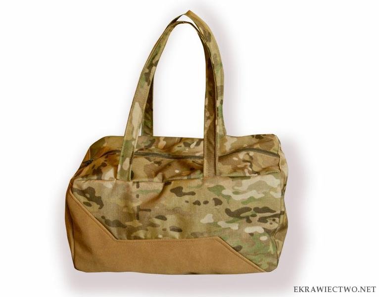 Obiecałem jakiś czas torebki. I oto one. Połączenie Cordury ze skórą sztuczną ( zamsz ). Zamykana na suwak. W środku 3 kieszenie: - organizer ( komórka , długopisy ) - jedna na mniejszej ściance na rzep - jedna zamykana na suwak po całej długości boku Asymetryczny łamany bok. Uszy wykonane z Cordury. Uszyłem na razie tylko w tych 2 kolorach. Coyote i Multicam ________________________________________________________