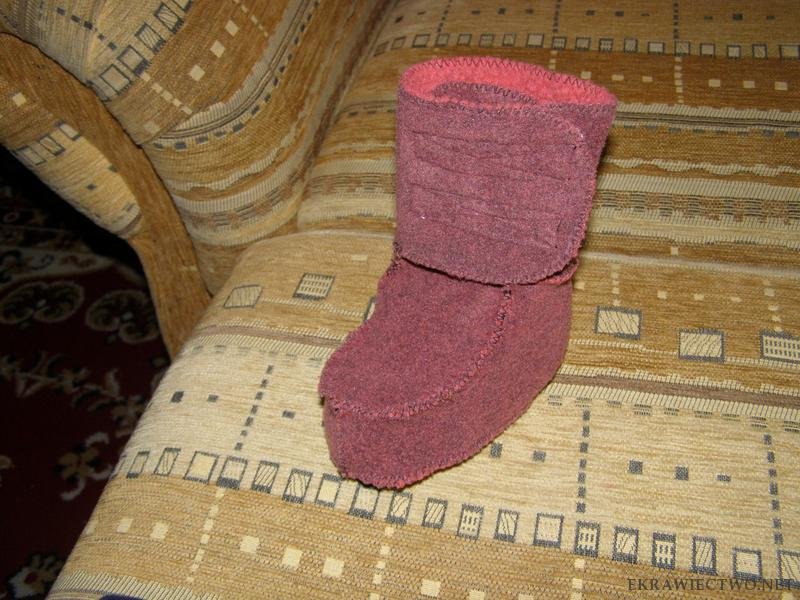 ostatnio mam mało czasu na szycie, ale potrzeba ciepłych bucików dla synka zmusiła mnie do zaprojektowania i wykrojenia takich oto butków.