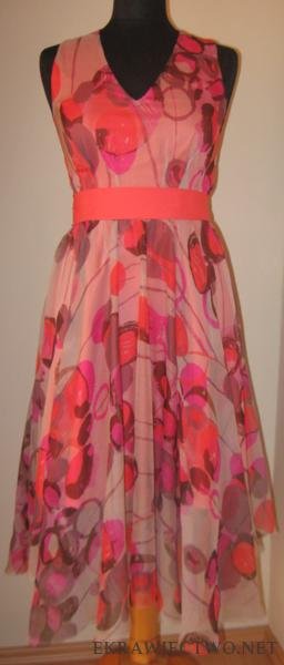 Hej!!!PLISOWANKA marzyła mi się już od dwóch lat,kusiła mnie sukienka z burdy 5/2007model 128(zdjęcie poniżej).Zrezygnowałam z plis gdyż tkaniny potrzeba dużo(dół pełne koło)więc koszt tkaniny już duży-a jeszcze odesłać do plisowania....,za to pozwoliłam sobie na szyfon jedwabny i jestem bardzo zadowolona z sukienki i chociaż jeszcze nie gotowa już pokazuję.Dół jak widać z obciżąnikami czeka na obcięcie