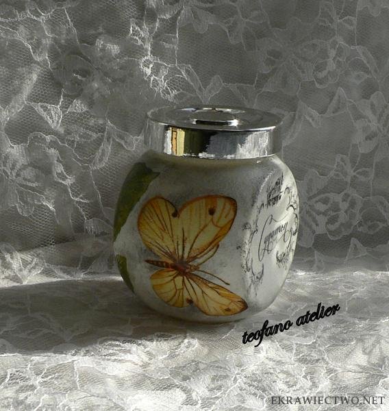 Zostały jeszcze kubki i igielniki. te ostatnie zrobiłam ze słoików. W środku trzymam guziki. ________________________________________________________