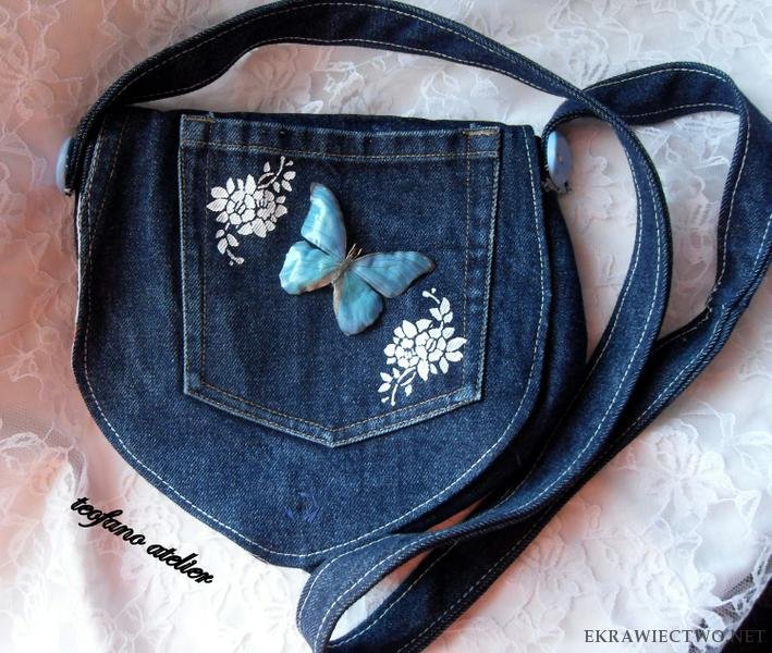 I pokazuję następne wytwory. Dlaczego znów torebki? Różowe z końmi, dżinsowa z kwiatkami są przeznaczone dla dziewczynek. Dżinsowa z motylem, dla trochę starszych dam. ________________________________________________________