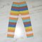 Pokroiłam materiał na po długości, bo tak mi akurat pasowało na rozmiar spodni. Nie wzięłam pod uwagę rozciągliwości materiału i dodałam chyba za dużo, bo młoda ma je luźnawe... nie opinają się jak getry, ale już zaszywać nie będę... Jak tak patrzę po pierwszym razie to nici elastyczne do wykończania stębnówką by mi się przydały. No i dumna jestem z siebie bo się nie marszczą, czyli dobrze ustawiłam overlok Modelka w przedszkolu, więc fotka samych martwych getrów. Dziękuję za rady, następnym razem skroję trochę mniej |