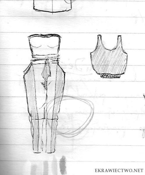 szkicownik jest bardzo stary i pomazany, ale widać o co cho Góra miała być jaśniejsza, niż dół. Pas miała zastąpić zamotana szarfa, bo taka była wtedy moda. Drugi kombinezon miał być trójkolorowy (precyzyjniej - trzy odcienie szmaragdowego) i miał stanowić komplet z topem na ramiączkach oraz gumą w talii. Obydwa były pomyślane pod kątem satyny lub atłasu. W tamtych latach nie było jeszcze takiego wyboru tkanin i ja też się sporo słabiej w tym orientowałem Dzięki temu, że odkopałem ten szkicownik - odświeżyło mi się sporo fajnych pomysłów z tamtych lat, a to poniekąd dzięki Tobie! Zbych ________________________________________________________