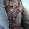 Zbigniew dobrze dostrzegłeś nie jest to skóra odzieżowa, na zdjęciu w 1 poście na 100% jest skóra bydlęca taka jak w linku który wcześniej podałem i nie jest to dwoina (jest za słaba na takie przeznaczenie). Taką skórę można zastąpić podobną tańszą końską, w ostateczności świńską (gorszy efekt). Każdym tłuszczem można przyciemnić skórę, nawet spożywczym, czy silnikowym, ale jak zależy na jakości nie idziemy na kompromisy, używa się olej kostny (z kości), a najlepszy jest trudno dostępny kopytkowy (z kopyt). Skórę myjemy wodą z mydłem glicerynowym aby ją odtłuścić i oczyścić pory (skóra trochę się zbiegnie), suszymy w temperaturze pokojowej, po czym wacikiem nanosimy równomiernie olej - po wchłonięciu oleju i obsuszeniu możemy powtarzać nanoszenie oleju do oczekiwanego przyciemnienia.