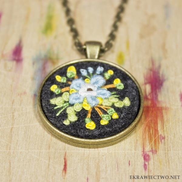 Bardzo oryginalny pomysł,żeby takie medaliony czy raczej kamee (bo tak to się chyba fachowo nazywa?) tworzyć za pomocą haftu. Sama jestem fanką tego typu biżuterii, ale wszystkie posiadane przeze mnie "okazy" są wykonane z jakiegoś metalu i szkła, więc siłą rzeczy kojarzą mi się z raczej ciężką biżuterią. A tu tymczasem nie dość że ładnie, to jeszcze lekko