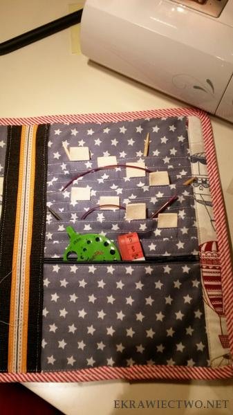 Oto moja kolejna próba zapanowania nad entropią. Konkretnie, chaosem w niewielkiej, aczkolwiek stale rosnącej, kolekcji drutów do dziergania. Organizer na druty! Czysta improwizacja. Pierwszy w życiu wszyty zamek! Pierwsza w życiu lamówka! Bogowie, jak krzywo... Przepraszam za zdjęcia robione kalkulatorem, ale już ciemno i ciężko o dobre oświetlenie. ________________________________________________________