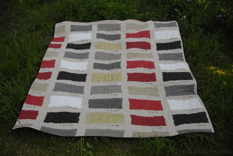 Wielkość 200 cm na 200 cm. Pikowanie po szwach, ale wzdłuż czarnych lini czyli trzy centymetry i obrót, kolejne trzy centymetry i obrót - koszmar ________________________________________________________