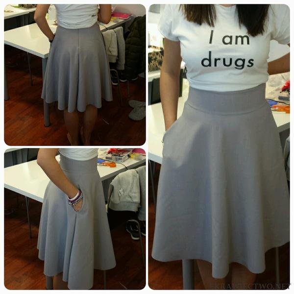 Dawno mnie nie było... rozpoczęłam kurs szycia spódnica z wysokim stanem z półkoła z kieszonkami i zamkiem krytym. |
